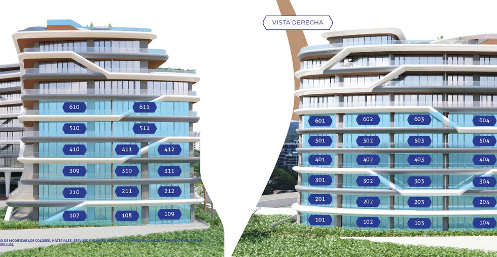 Unidades disponibles: 101-103, 105, 109, 201-203, 205, 207-208, 212, 301-303, 305-307, 311, 401-403, 405-407, 412, 501-503, 505-507, 601-603, 605-607