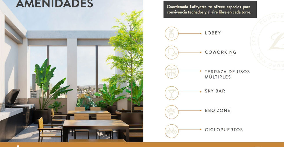 Coordenada Lafayette te ofrece espacios para convivencia techados y al aire libre en cada torre.